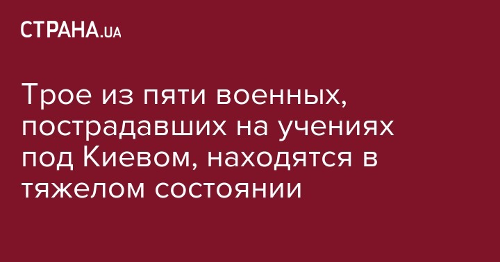 Трое из пяти военнослужащих, пострадавших во время учебно-боевых стрельб на полигоне в Киевской области, находятся в тяжелом состоянии. Об этом журналистам 112-Украина сообщил военный прокурор Дарницкого гарнизона центрального региона Николай Петришин.