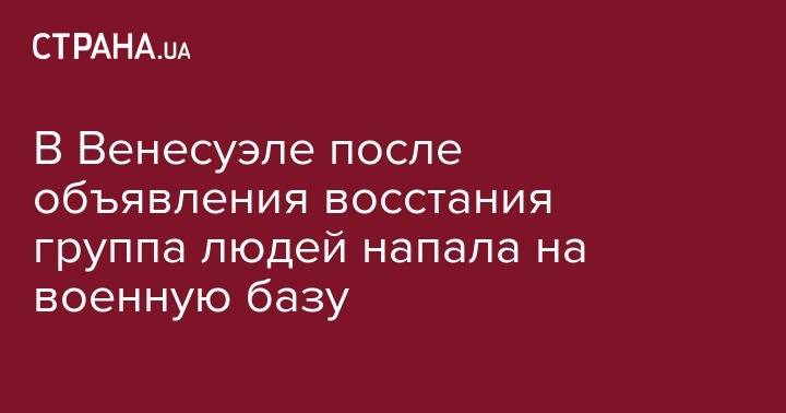 В Венесуэле спустя несколько часов после заявления группы военных про восстания против президента страны Николаса Мадуро произошло нападение на военную базу в городе Валенсия. Об этом говорится в заявлении Вооруженных сил Венесуэлы, которое зачитали в воскресенье в эфире государственного телеканала Venezolana de Televisión, передает ТАСС.