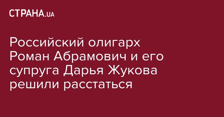 Бизнесмен, владелец футбольного клуба "Челси" Роман Абрамович и соосновательница музея современного искусства "Гараж", дизайнер Дарья Жукова решили расстаться после 10 лет совместной жизни, но остаются бизнес партнерами, сообщил росийскому "Интерфаксу" официальный представитель бизнесмена Джон Манн.