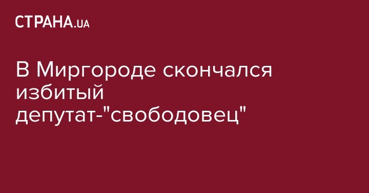 В Миргороде Полтавской области скончался в реанимации от полученных травм в результате нападения неизвестных председатель фракции ВО "Свобода" в Миргородском городском совете Олег Супруненко, избитый 12 июля. Об этом сообщили в пресс-службе "Свободы".