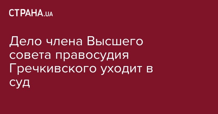 "Генпрокуратура завершила досудебное расследование в уголовном производстве и вручила обвинительный акт действующему члену Высшего совета правосудия Гречковскому и его соратнику", - написала Сарган на своей странице в соцсети Facebook.