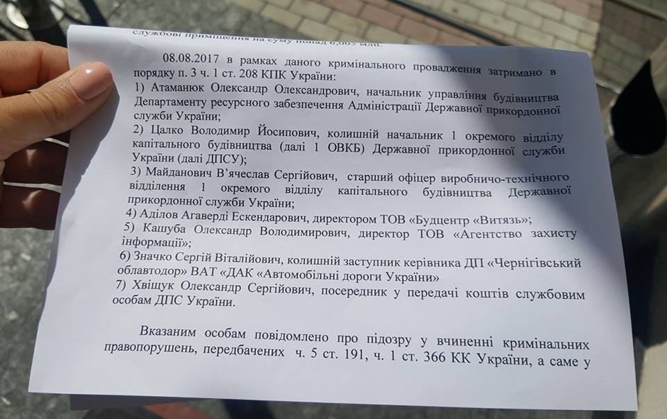 Задержанными 8 августа в рамках расследования в уголовном производстве по факту растраты госсредств, выделенных для строительства "Стены Яценюка" на границе с РФ, оказалось не шесть, а сразу семь фигурантов. Об этом со ссылкой на источники в правоохранительных органах в Facebook сообщает журналистка СТБ Алена Лунькова.