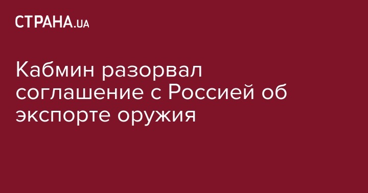Кабинет министров на сегодняшнем заседании, 9 августа, разорвал соглашение между правительствами Украины и России "О порядке взаимодействия при осуществлении экспорта товаров (продукции) военного назначения в третьи страны". Об этом сообщает "112 Украина".