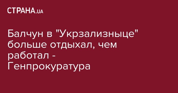 Балчун в "Укрзализныце" больше отдыхал, чем работал - Генпрокуратура