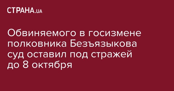 "До 8 октября продлили меру пресечения содержание под стражей полковника ВСУ Ивана Безъязыкова. Такое решение объявила судья после совещательной комнаты. Таким образом, ходатайство Генпрокуратуры судья полностью удовлетворила", - сказано в сообщении.
