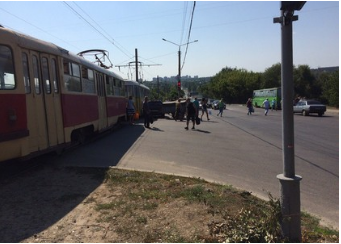 В Харькове автомобиль врезался в трамвай с пассажирами