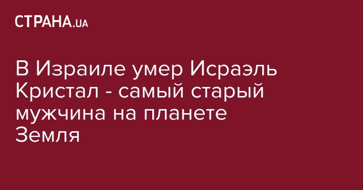 В Израиле скончался самый старый мужчина в мире Исраэль Кристал в возрасте 113 лет. Обэтом пишут "РИА Новости".