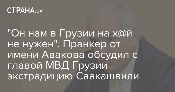 "Премьер мне сказал, что этот уважаемый человек нах@й, извините за выражение, нам здесь не нужен. Он авантюрой только занимается и больше ничем ... Лишние хлопоты", - ответил глава МВД Грузии на предложение пранкера, пообещав, однако, снова посоветоваться с начальством.