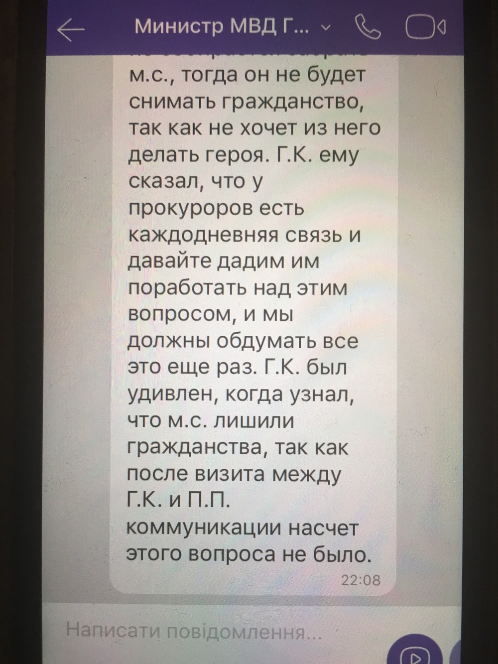 Судя по этой переписке, Порошенко поднимал вопрос о Михо еще во время встречи с премьер-министром Грузии в Давосе. Затем вопрос был поднят во время визита Порошенко в Грузию. Однако, как следует из этого сообщения, позиция главы правительства Грузии была неизменна - Саакашвили им не нужен.