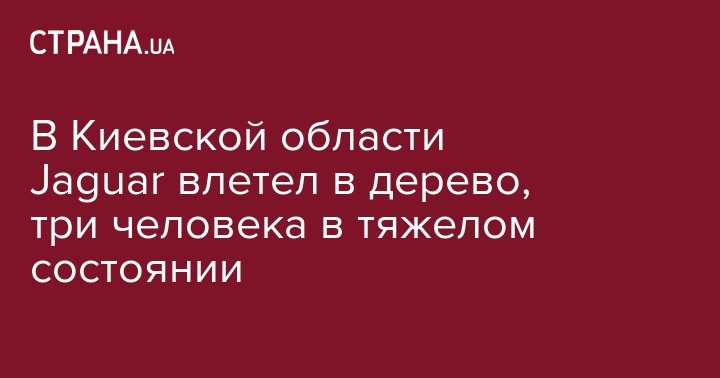 Ночью 12 августа в Киевской области водитель Jaguar на литовских номерах не справился с управлением и въехал в дерево. В результате трое людей пострадали, все они в тяжелом состоянии. Об этом сообщает портал Киев Оперативный на странице в Facebook.