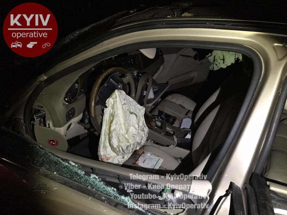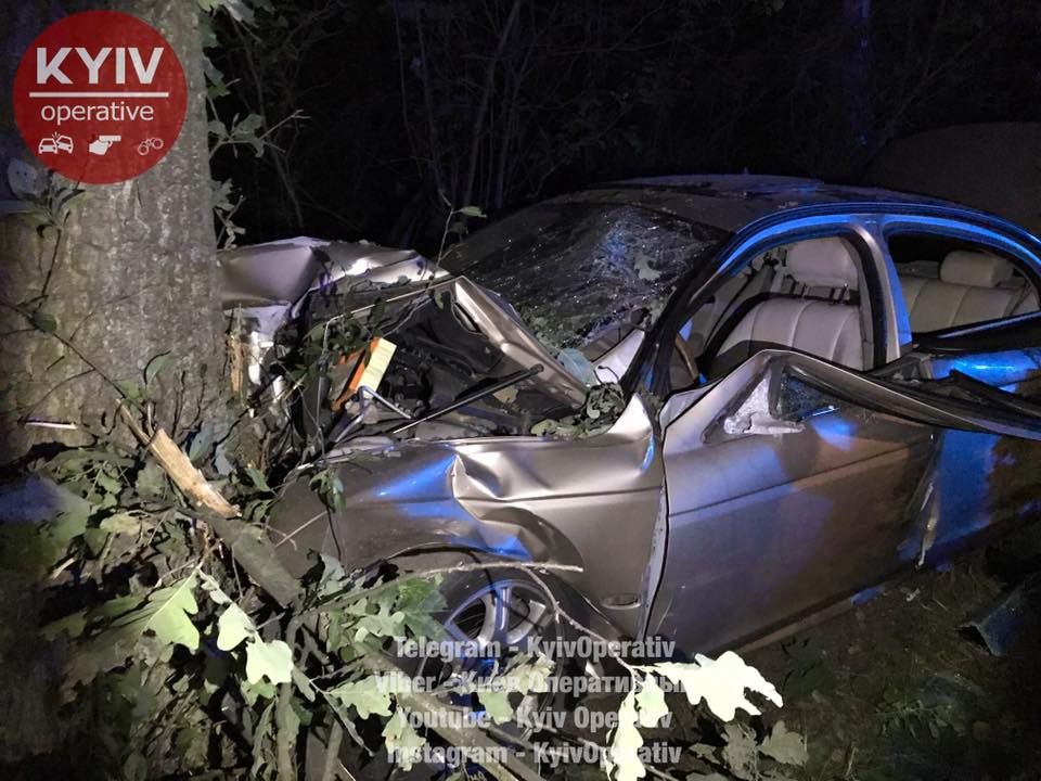 На Гостомельской трассе водитель Jaguar с 5 пассажирами в автомобиле не справился с управлением и на полном ходу въехал в дерево.