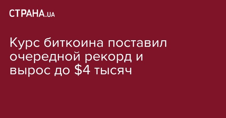 Курс биткоина поставил очередной рекорд и вырос до $4 тысяч
