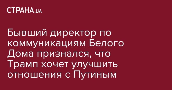Президент США Дональд Трамп настроен на улучшение отношений с президентом России Владимиром Путиным, несмотря на то, что многие американские журналисты критикуют такой подход. Уверенность в этом выразил уволенный с поста директора по коммуникациям Белого дома Энтони Скарамуччи в эфире телеканала ABC.