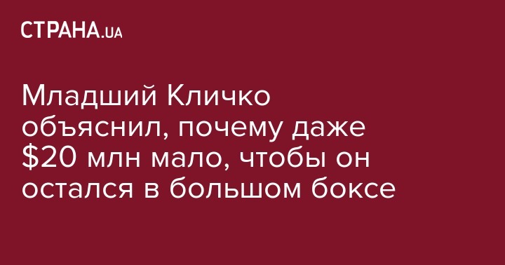 Младший Кличко объяснил, почему даже $20 млн мало, чтобы он остался в большом боксе