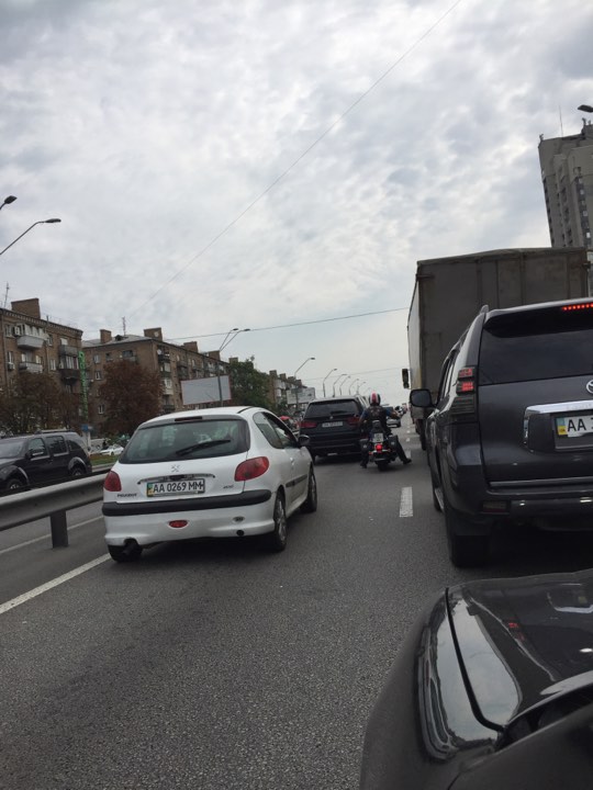 В Святошинском районе Киева образовалась огромная пробка, которая растянулась от станции метро "Житомирская", мимо "Святошино" и "Нивок", аж до "Берестейской". Об этом сообщает корреспондент "Страны".