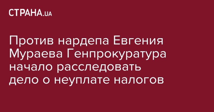 Генеральная прокуратура расследует дело о возможном уклонении от уплаты налогов внефракционным депутатом Верховной Рады, а также владельцем телеканала NewsOne Евгением Мураевым. Об этом со ссылкой на материалы Печерского райсуда Киева сообщают "Украинские новости".