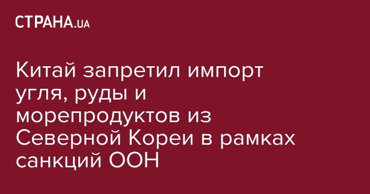 Министерство торговли Китая запретило импорта угля, железной руды, свинца и морепродуктов из КНДР. Об этом сообщает "Европейская Правда".