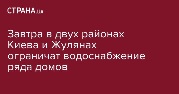В столице ограничат водоснабжение домов в Шевченковском, Святошинском районах, и в поселке Жуляны из-за ремонтных работ 15 августа и в ночь на 16 августа.