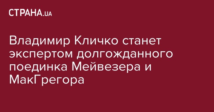 Бывший чемпион мира в супертяжелом весе по боксу Владимир Кличко будет присутствовать на громком поединке между Флойдом Мейвезером и Конором МакГрегором, в качестве эксперта.