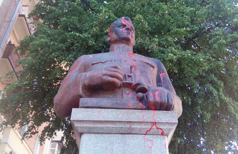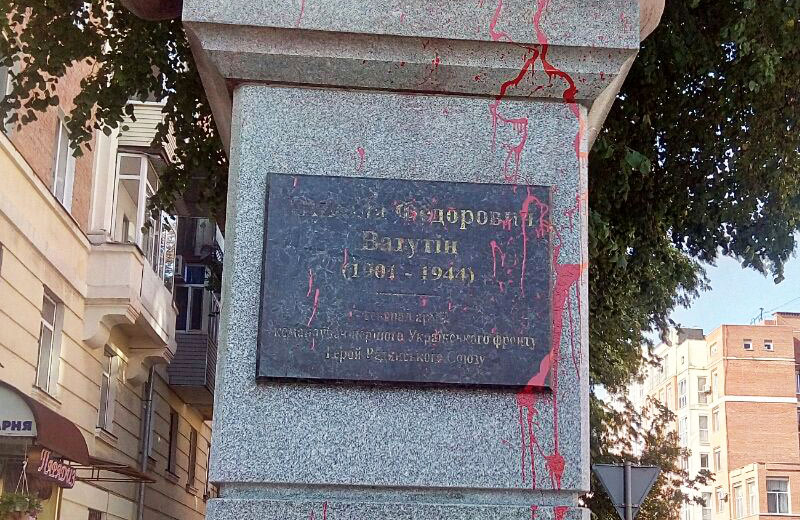 Это уже второй случай вандализма в отношении памятника за год с небольшим. В июне Ватутина тоже облили краской, но ее потом отмыли.
