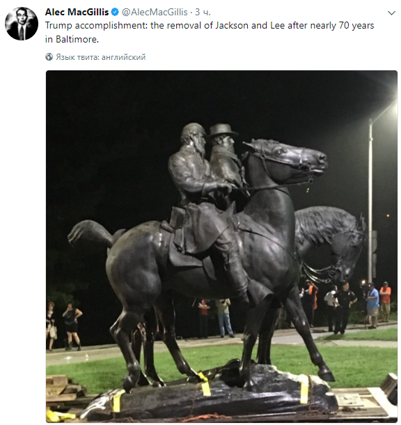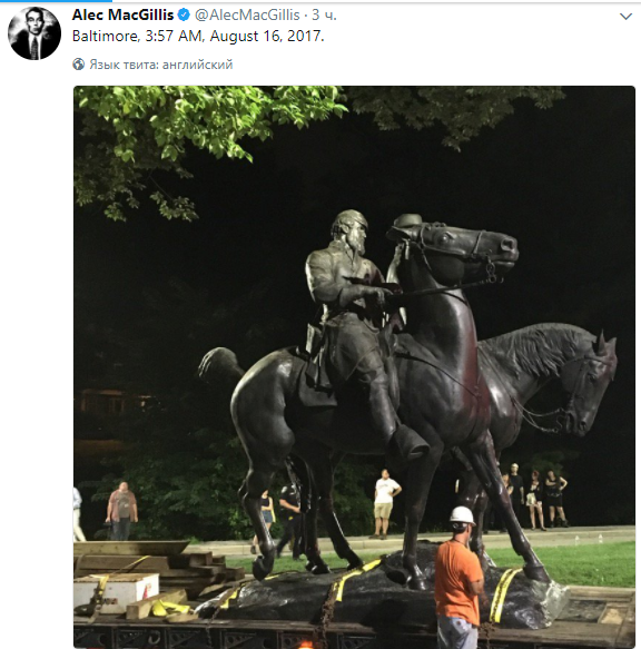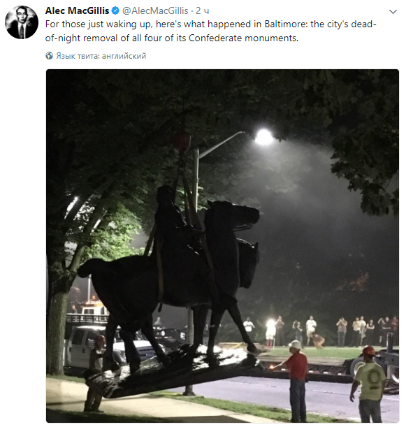 Американские власти убрали памятники Конфедерации в Балтиморе на фоне событий, которые происходили в Шарлоттсвилле. Об этом сообщает The Guardian.
