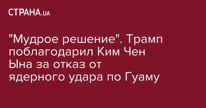 Президент США Дональд Трамп назвал "очень мудрым и хорошо обоснованным" решение лидера КНДР Ким Чен Ына не наносить ядерного удара по военной базе США на острове Гуам в Тихом океане.