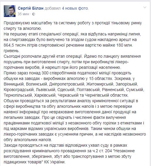 Об этом написал на своей странице в соцсети Facebook первый заместитель главы Государственной фискальной службы Украины Сергей Билан.
