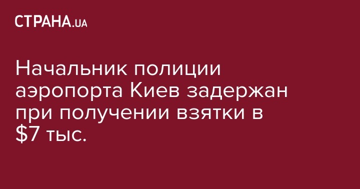 Сотрудники Генеральной прокуратуры и Службы безопасности Украины задержали начальник отделения полиции в аэропорту "Киев" Соломенского районного управления Главного управления Национальной полиции в г.Киеве, который требовал и получил через посредника-адвоката от гражданина Узбекистана неправомерную выгоду в размере $7 тыс.