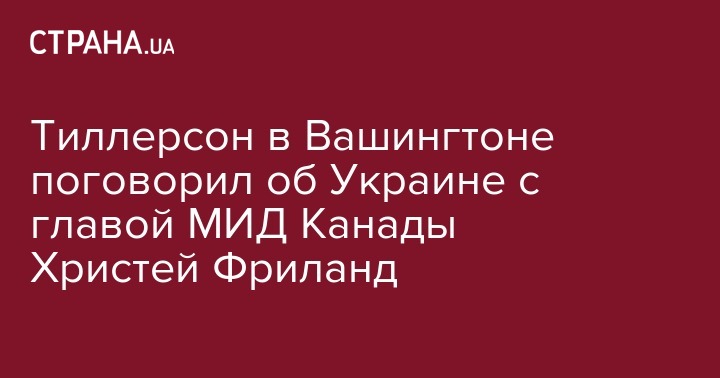 Государственный секретарь США Рекс Тиллерсон и министр иностранных дел Канады, этническая украинка Христя Фриланд во время встречи в Вашингтоне обсудили текущую ситуацию в Украине, говорится на сайте Госдепа.