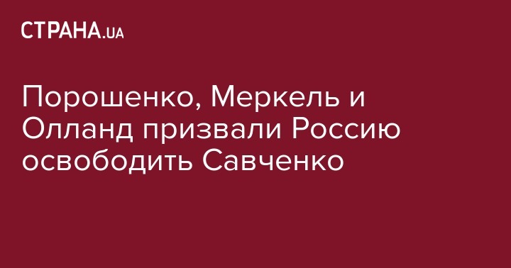 Лидеры Украины Петр Порошенко, Германии Ангела Меркель и Франции Франсуа Олланд акцентировали внимание на ухудшении здоровья украинской летчицы Надежды Савченко и призвали руководство России немедленно ее освободить, как это и предусмотрено Минскими договоренностями. Об этом сообщает официальное интернет-представительство президента Украины.