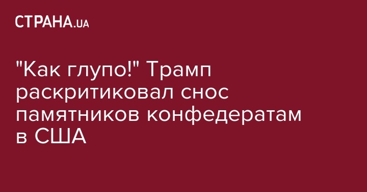 Президент США Дональд Трамп подверг критике снос памятников конфедератам в американских городах. Об этом президент написал в Twitter.