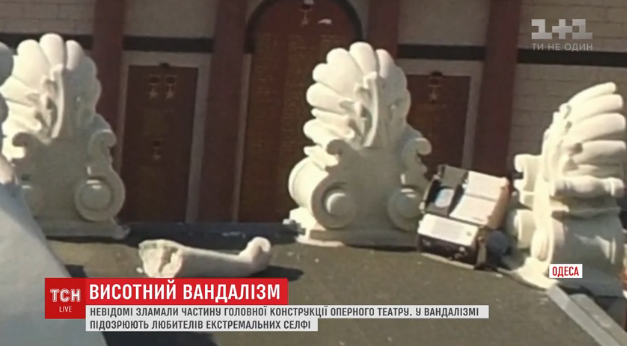 В Одессе неизвестные сломали часть знаменитой конструкции на крыше театра оперы и балета. При осмотре здания с квадрокоптера работники обнаружили отломанную лапу пантеры, которая влечет колесницу с Мельпоменой. Об этом сообщает ТСН.