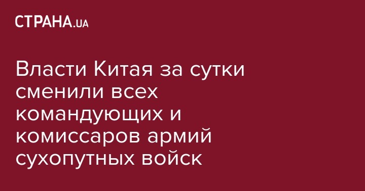 Власти Китая сменили 26 командующих и политкомиссаров всех 13 армий сухопутных войск Народно-освободительной армии Китая (НОАК). Список назначенных на эти должности военачальников опубликовала в пятницу газета "Жэньминь жибао", передает ТАСС.