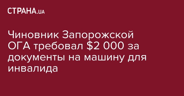 Чиновник Запорожской ОГА требовал $2 000 за документы на машину для инвалида