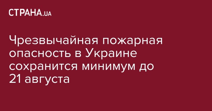 "По данным Укргидрометцентра, 19-21 августа в Украине, кроме Закарпатской и Одесской областей, будет преобладать чрезвычайная пожарная опасность", - заявила пресс-служба.