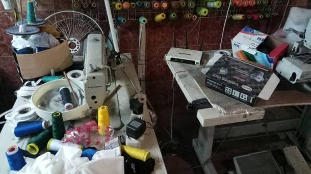 Среди работников цеха силовики изъяли швейные машинки, рулоны ткани, готовую продукцию и клише фирм Nike и Columbia.