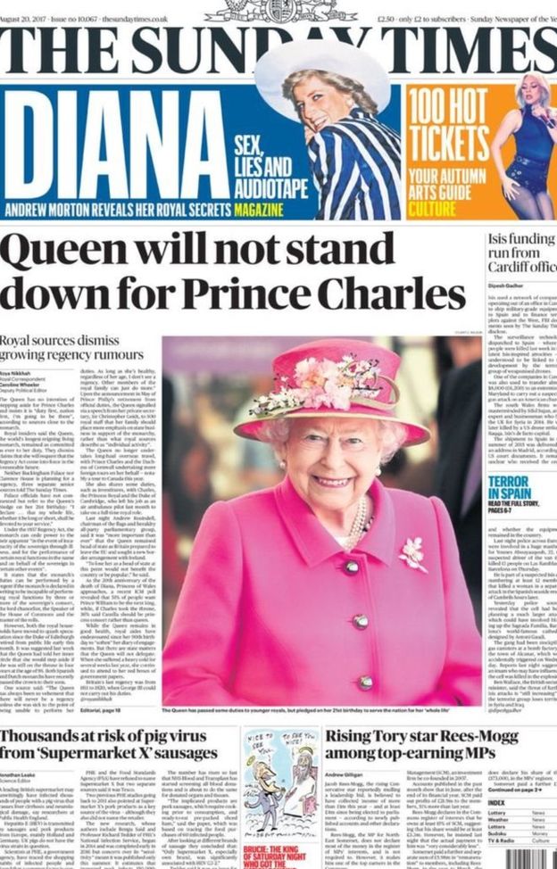Близкие к окружению королевы Елизаветы II сообщают, что она предана выполнению своих обязанностей монарха перед страной и не намерена слагать полномочия в пользу принца Чарльза. "Три высокопоставленные источники сообщили The Sunday Times, что ни Букингемский дворец, ни Кларенс-хаус не имеют планов по поводу регентства", - сообщает издание.