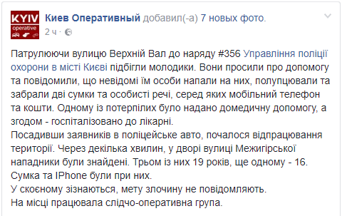 Через несколько минут полицейские во дворе улицы Межигорской нашли нападавших. Троим из них по 19 лет, еще одному – 16. Сумка и IPhone были при них.