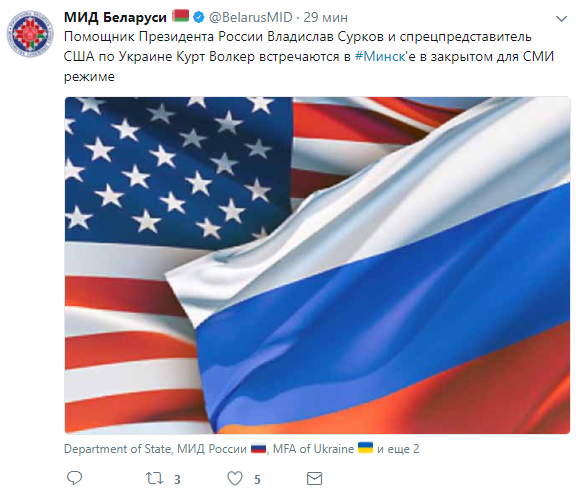 Ранее пресс-секретарь МИД Беларуси Дмитрий Мирончик сообщал, что встреча Суркова и Волкера запланирована ориентировочно на вторую половину дня.