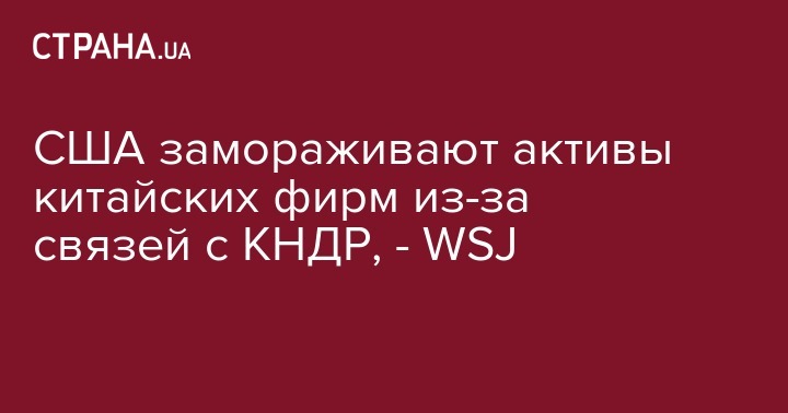 США замораживают активы китайских фирм из-за связей с КНДР, - WSJ