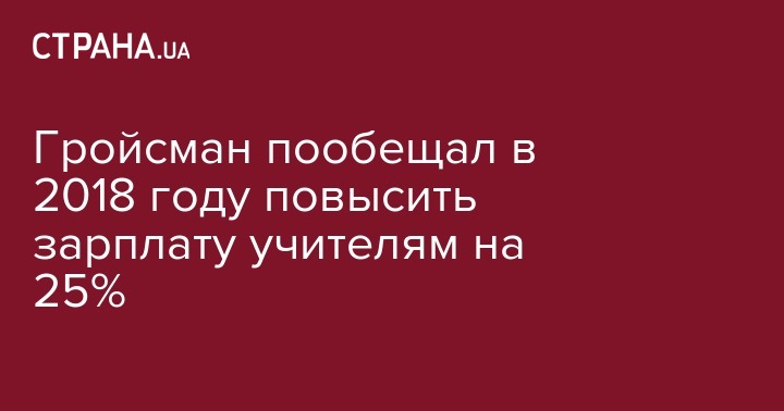 Кабинет Министров намерен предусмотреть повышение на 25% заработной платы учителей в 2018 году. Об этом премьер-министр Владимир Гройсман сообщил в ходе ознакомления с работой Центра социальных служб в формате "Прозрачный офис" Святошинского района Киева, передают Украинские новости.
