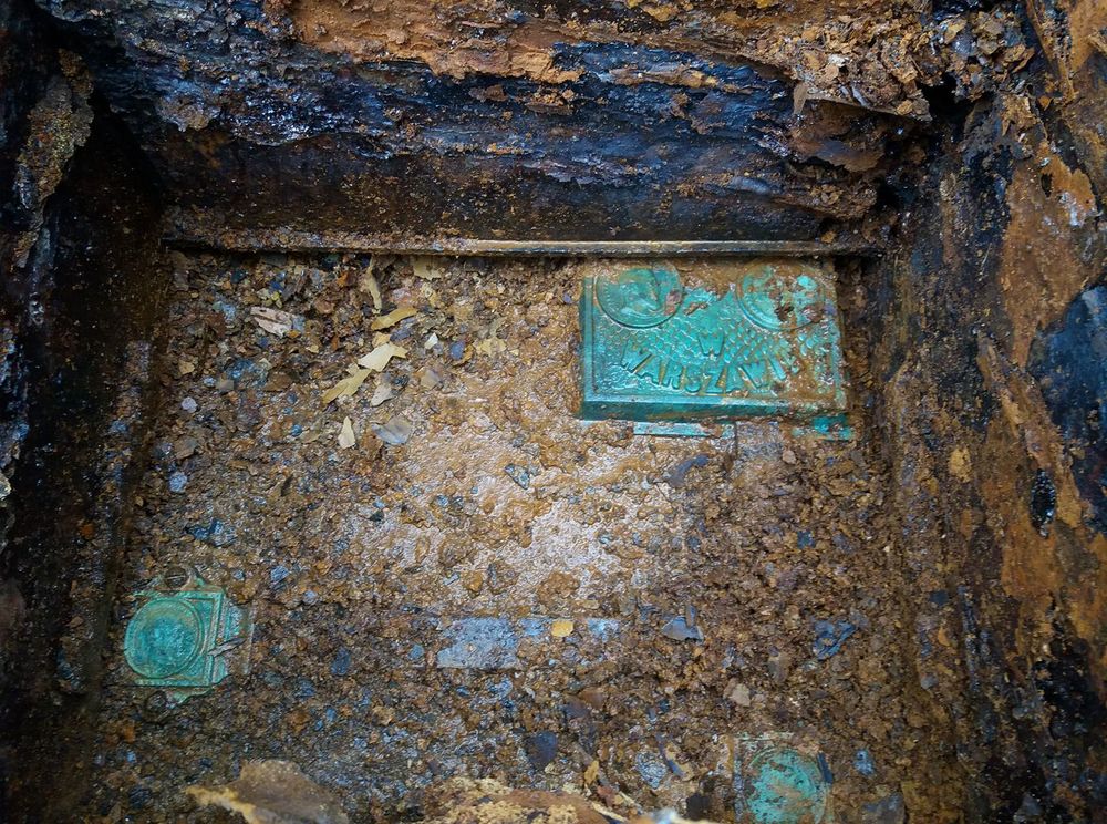 Сначала археологи предполагали, что сейф немецкого происхождения, но после его открытия на обратной стороне кодовых замков обнаружили надписи на польском языке, что опровергло предыдущую версию.