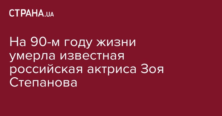 В Москве на 90-м году жизни скончалась актриса Зоя Степанова. Об этом сообщается на сайте Союза кинематографистов России.