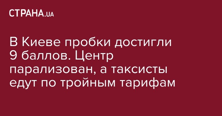 В Киеве пробки достигли 9 баллов. Центр парализован, а таксисты едут по тройным тарифам