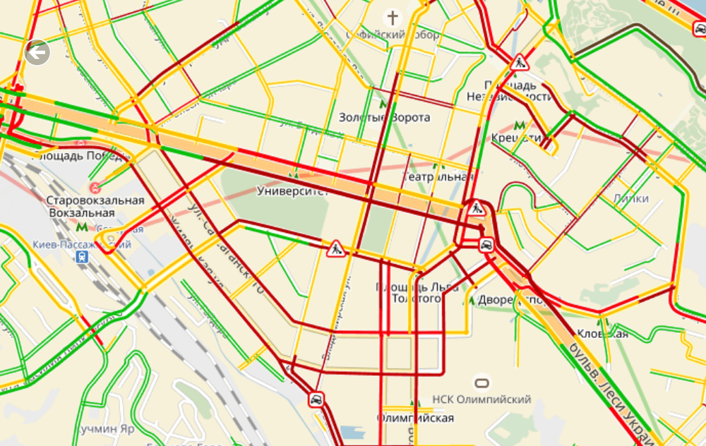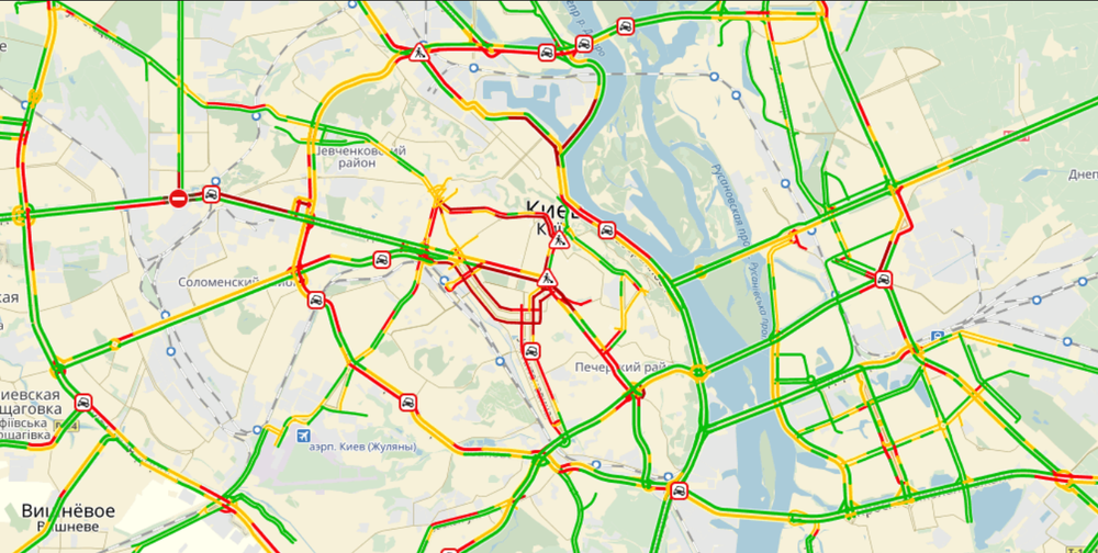 Полностью заблокирован проезд по центру города, стоит бульвар Леси Украинки, тяжело проехать по Крещатику, пробка на бульваре Тараса Шевченко, на улице Владимирской, а районе Бессарабской площади, улицы Саксаганского и Жилянской.
