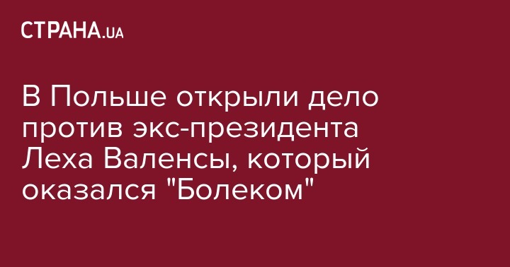 В Польше следственный отдел Института национальной памяти открыл уголовное производство в отношении экс-президента Леха Валенсы ввиду предоставления им ложных показаний, в частности, по делу "Болека".
