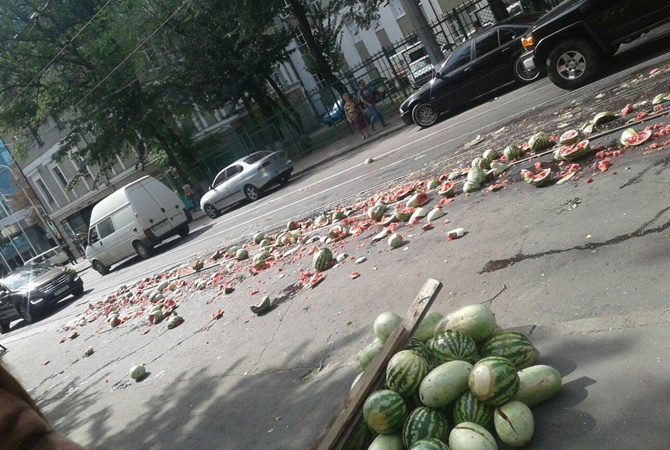 В Харькове не могут понять, откуда в центре города столько битых арбузов