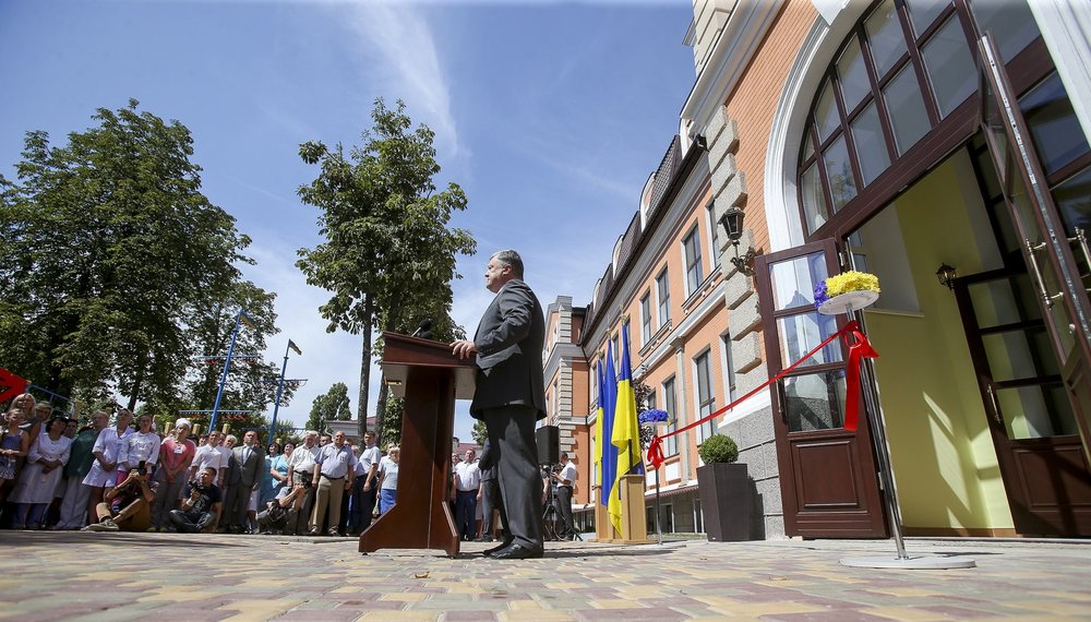 А в Северодонецке Порошенко принял участие в торжественной церемонии открытия обновленного здания для Луганского областного академического украинского музыкально-драматического театра.