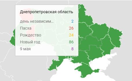 Схожие пропорции по запросам в отдельных областях. Для восточных, южных регионов и Киевской области мы выбрали русский язык запросов, для запада страны - украинский.