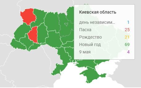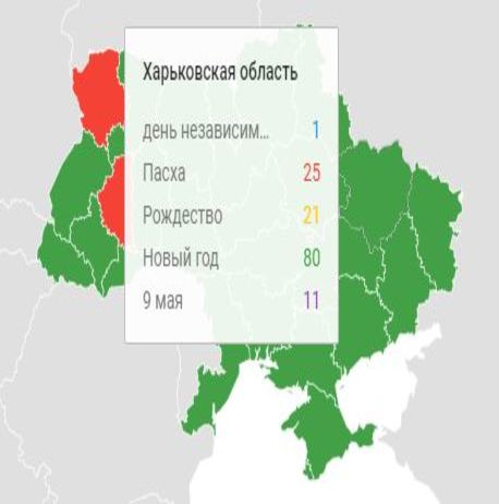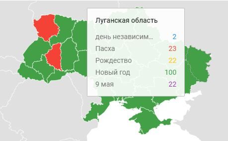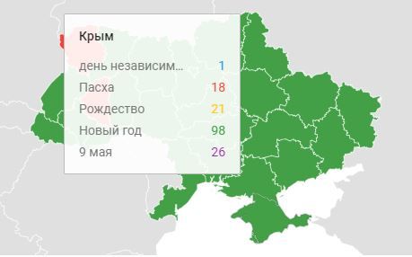 Мы сравнили популярность Дня независимости и перечисленных президентом праздников за 2016 год, добавив к общему списку 9 мая - День победы. В целом по Украине предпочтения разделились так: